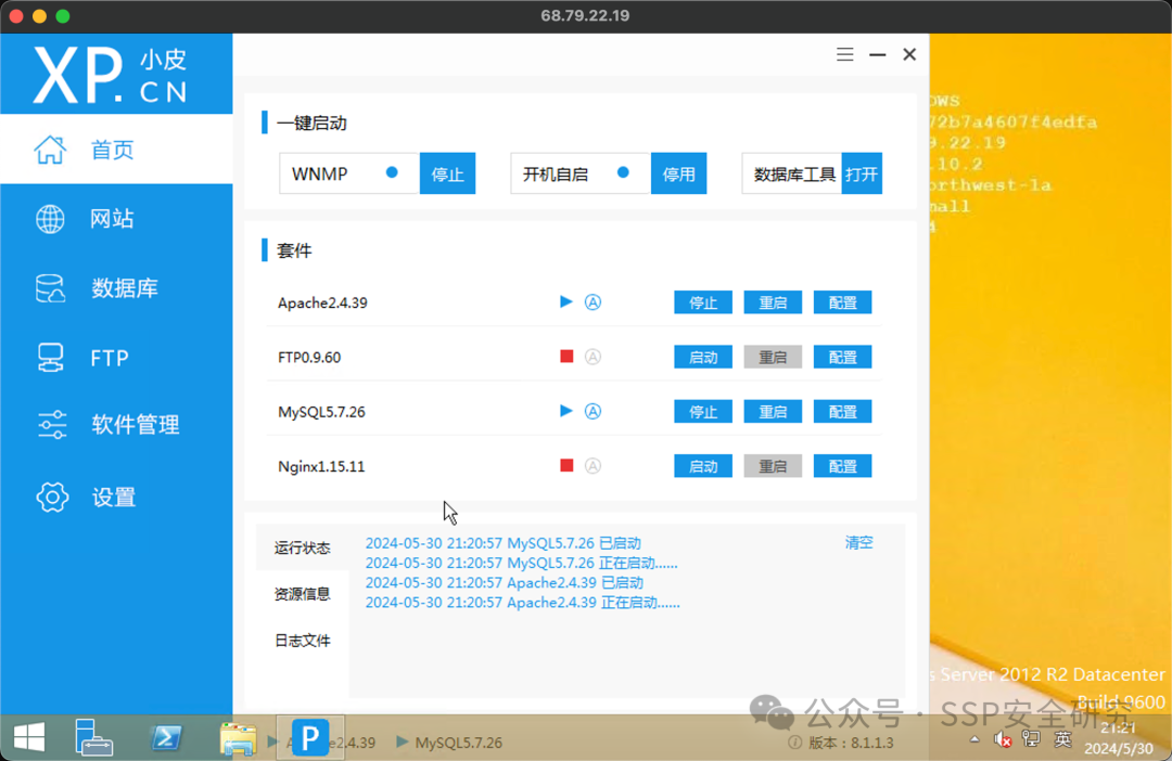 使用远程桌面登录到服务器上 发现桌面存在小皮面板 打开后发现 站点是基于Nginx的