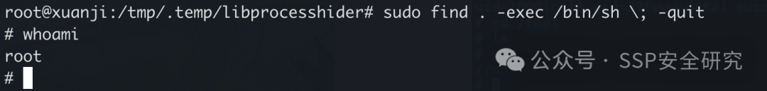 可以找到find 被设置了Sudo权限后可以试用如下命令进行提权