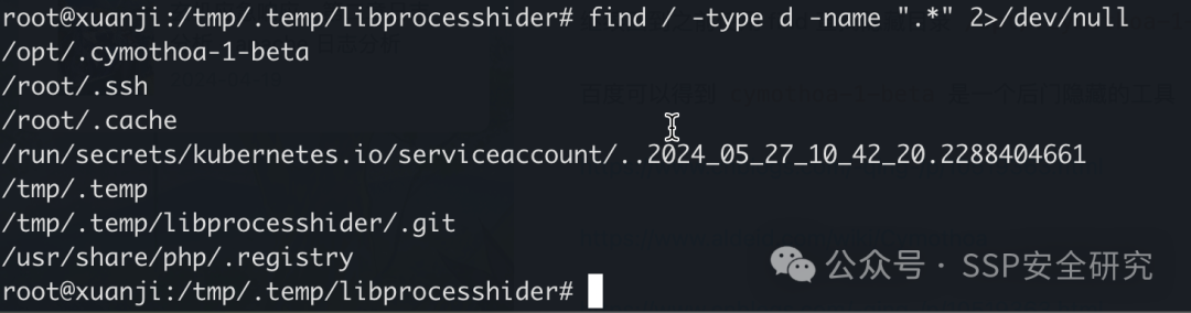 在查找隐藏文件夹的时候发现 一个隐藏文件夹/opt/.cymothoa-1-beta