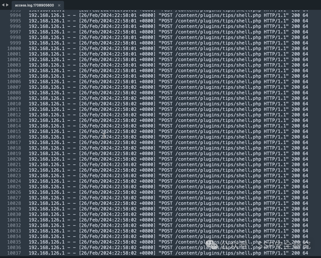 查看apache的日志发现IP 192.168.261.1 在进行爆破攻击和访问webshell操作 故判定攻击者IP为192.168.126.1