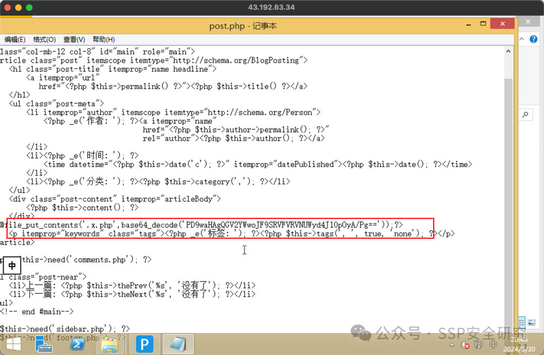 找到攻击者隐藏在正常web应用代码中的恶意代码,提交该文件名(完整路径)