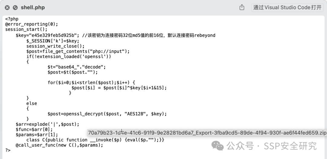 发现shell.php 为冰蝎木马 密码为rebeyond