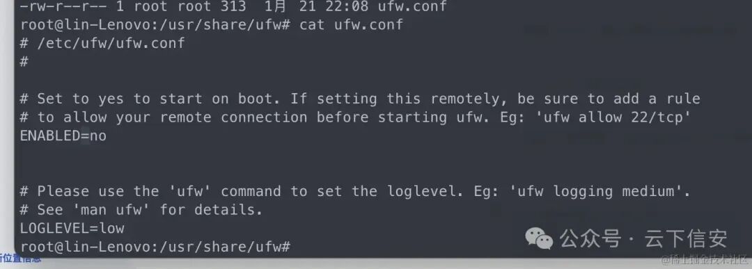 在修改防火墙之后直接将防火墙的配置文件/etc/ufw/ufw.conf修改权限为“只读”