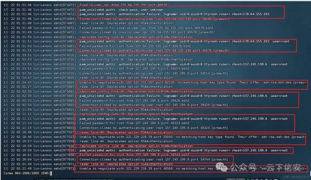 成功删除, 至此, 机子已经处于安全稳定的状态了, 日志中也只有攻击者ssh登录失败的信息