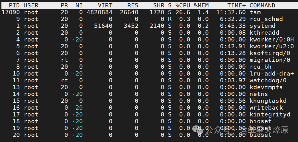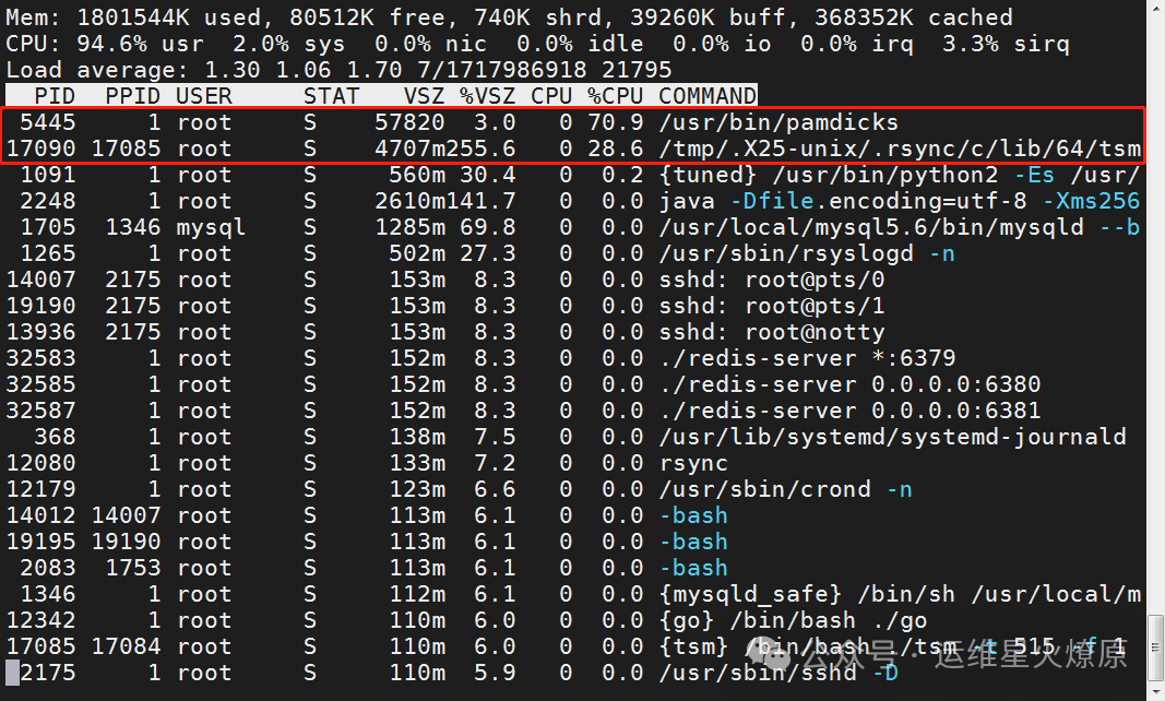 普通的top命令根本无法显示木马进程,看起来像是很正常的样子,因为top命令很可能已经被入侵者修改: