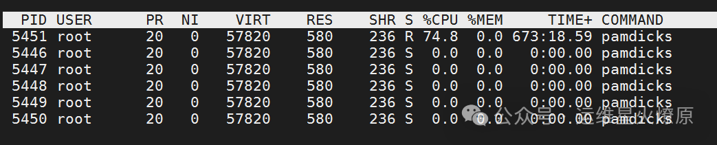 最后锁定这个挖矿进程名称是pamdicks,接下来把木马进程杀掉,然后把木马文件删除,应该就可以了。