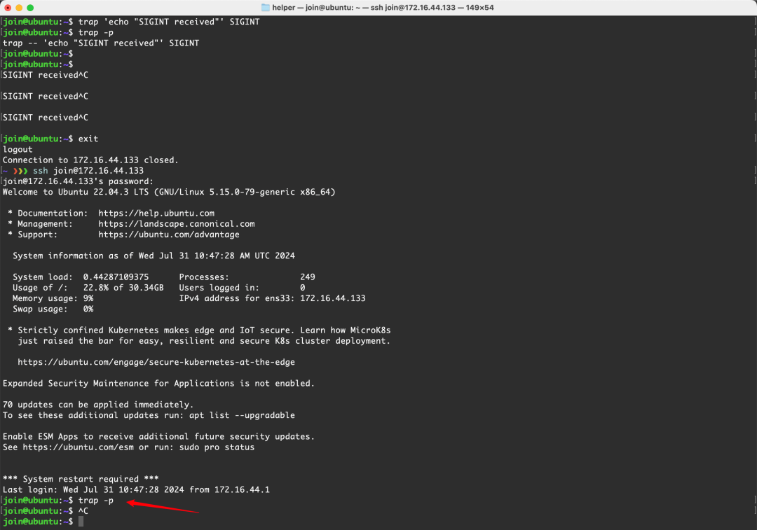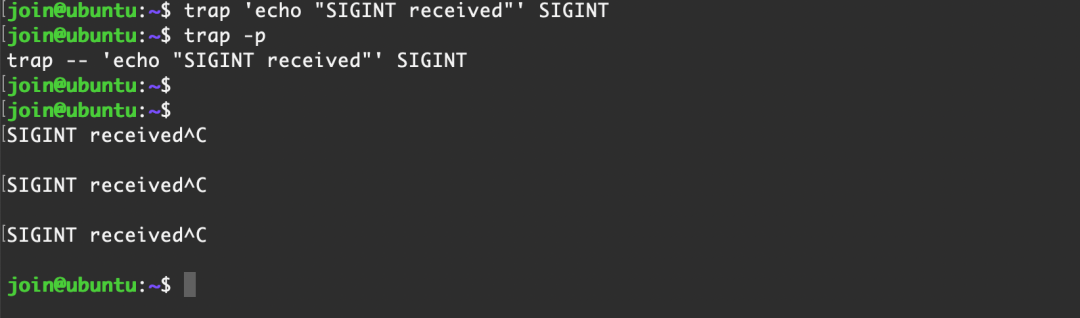 可以看到,再次登录相同系统、相同用户后,之前设置的 trap 就不见了,也没有任何效果了