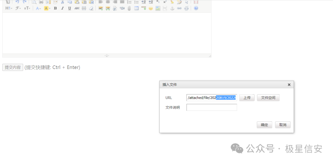 该编辑器支持上传功能,如果上传文件类型控制的不好,那么就能利用该漏洞上传恶意文件。