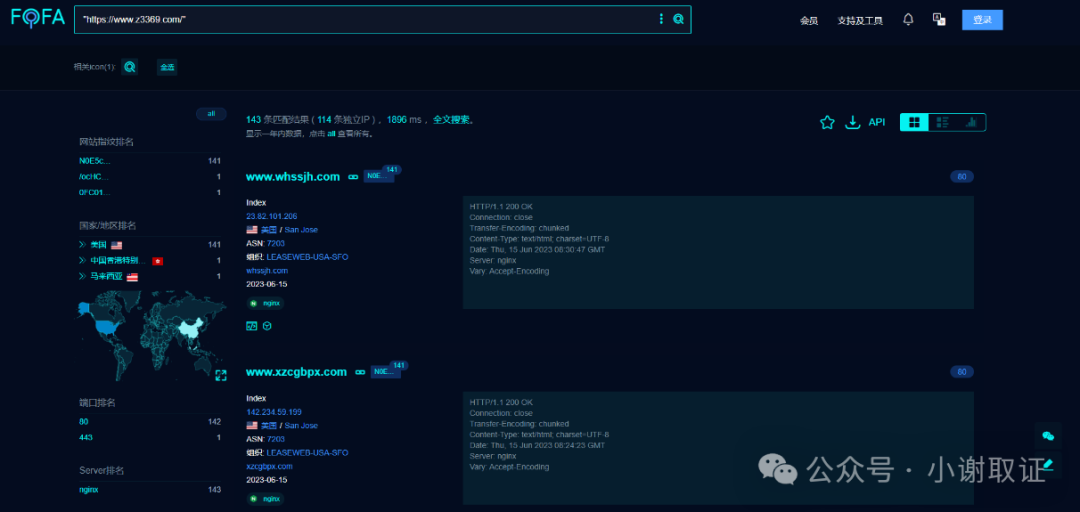 例如fofa可以从以下几个关键因素去搜索验证:IP/域名/title/logo/icp/body/js/css/html等静态特征值,搜索其相同的主机结果,进一步探测真实IP。