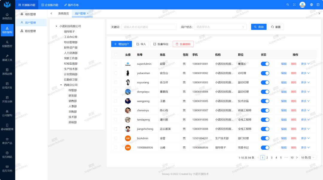 Snowy-Cloud提供了丰富的功能和模块,以下是部分功能的展示: