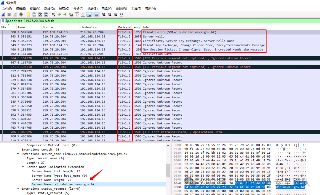 上线后wireshark抓包查看通信建立过程,可以看到全是TLSv1.2