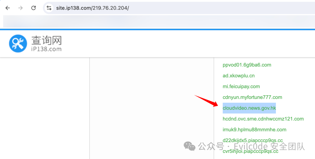 对这个CNAME全国PING,会得到很多CDN节点的IP,随便找一个去反查 这里我以219.76.20.204