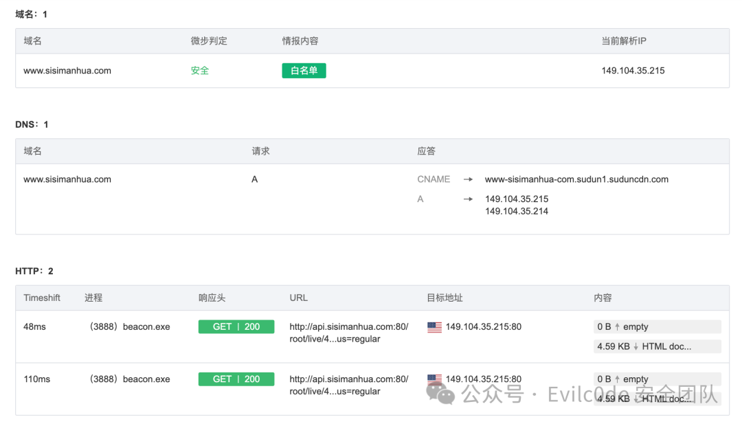 上传到微步沙箱进行分析,可以看到我们的通讯域名甚至是白名单,请求的url是api的子域