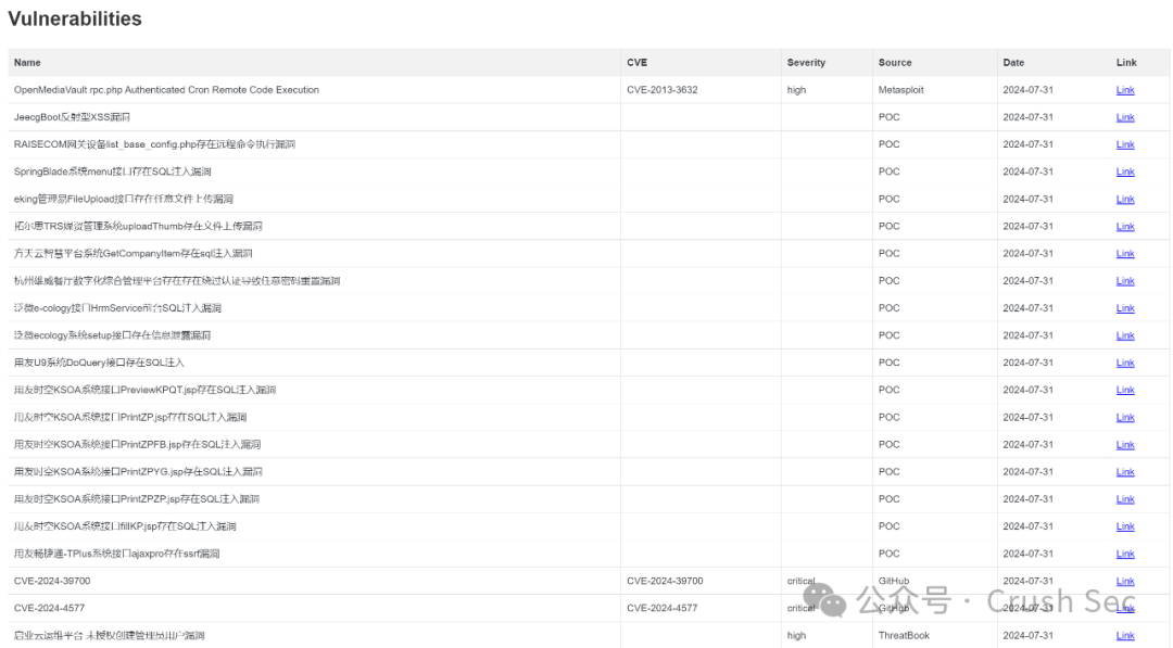 由于漏洞描述可能较长,影响观感,因此邮件中隐藏了描述字段,每个漏洞均可通过点击link跳转至poc或详情页。