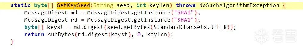 public static byte\[\] GetKeySeed(String seed, int keylen) throws NoSuchAlgorithmException {