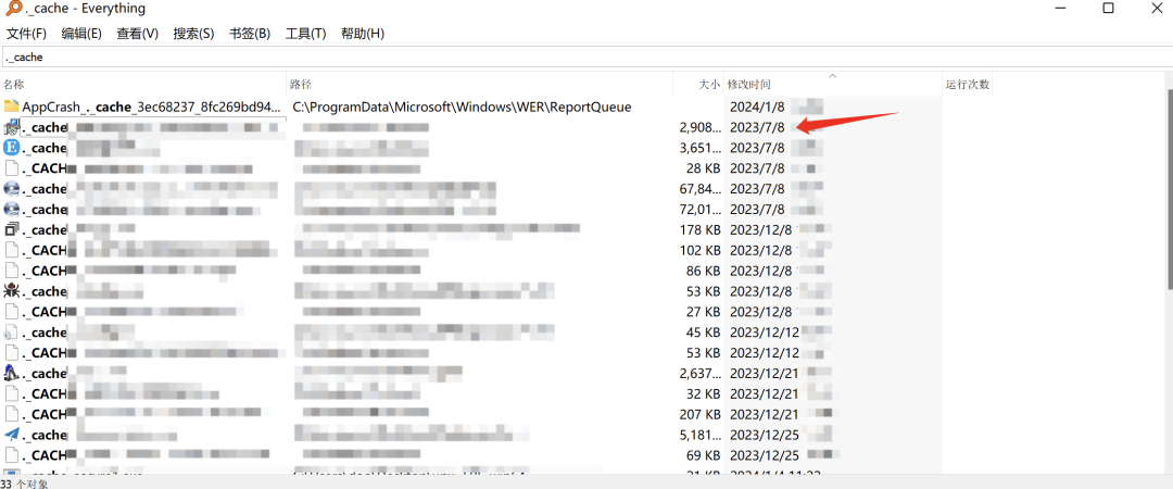 具体这个病毒是怎么来的,搜索了被感染的文件,发现最早被感染时间是2023/07/08,并且病毒文件夹下的“WS”文件夹创建时间也是2023/07/08,应该是在这天就被感染了,当时应该是在网上下的软件被捆绑了病毒。