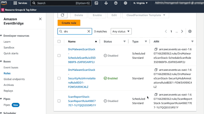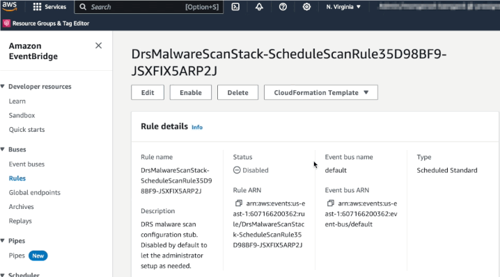 2、配置了 Amazon Elastic Disaster Recovery (DRS),至少同步了 1 个服务器源。如果没有,请查看此文档。复制配置必须考虑使用来自 AWS Key Management Service (AWS KMS) 的自定义托管密钥 (CMK) 进行 EBS 加密。Amazon GuardDuty 恶意软件保护不支持 EBS 的默认 AWS 托管密钥;