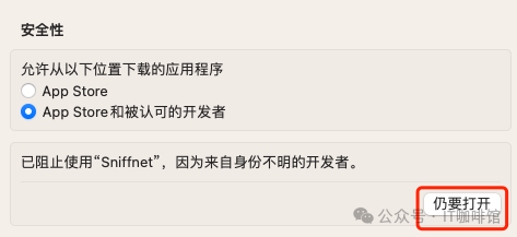 如果应用程序没有启动,请打开设置>隐私与安全性并单击仍然打开按钮