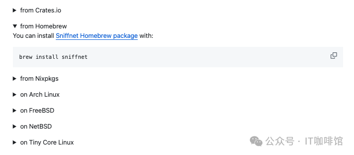 另外也可以通过常用的安装工具来安装Sniffnet,比如cargo、homebrew