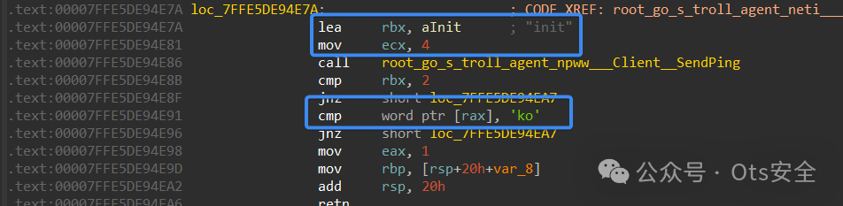 然后它启动与 C2 的连接,并将请求标记为“ init ”,这与初始化配置有关;然后它检查响应是否为“ ok ”