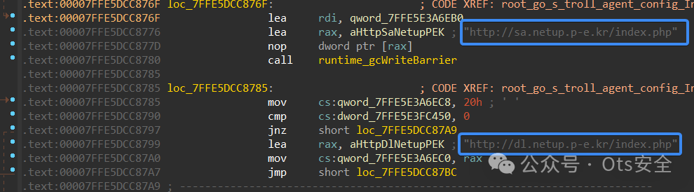 然后,它设置用于与 TA 通信的 C&C 服务器;它为此使用了两个 URL
