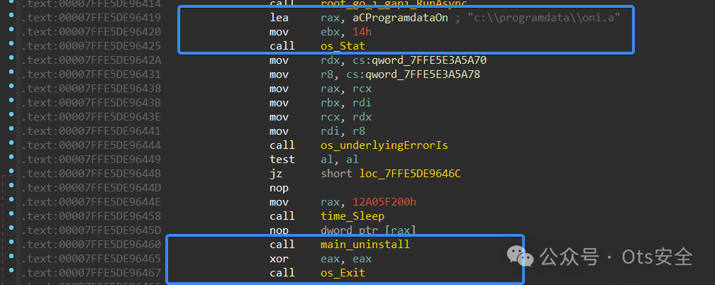 它会检查配置文件,如果基于 DLL 本身的“hai.a”或“oni.a”不存在,它就会停止进程并删除自身。