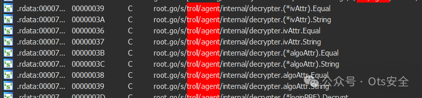 DLL 文件使用 VMprotect 进行保护。由于其反调试技术和代码虚拟化,这种保护的解包非常困难,因此很难解包。但是,我们的团队通过将调试器附加到先前创建的进程,编辑创建标志以将其设置为挂起模式,然后再次附加调试器,成功解包了样本。由于控制流平坦化和混淆,很难找到代码的入口点。尽管如此,我们还是设法从这个 DLL 文件中获取了一个解包样本。这个 DLL 是使用 Golang 编写的,名为 TrollAgent。