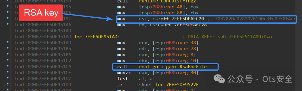 现在,收集完上述数据后,对每种数据类型进行压缩,然后使用 RSA 密钥进行加密,然后将其发送到 C2。它使用名为 root_go_i_gapi_ZipTo 的函数来压缩文件。