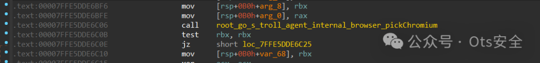 在 root_go_s_troll_agent_cmd___CmdGt2__procBrowser 内部有一个对 root_go_s_troll_agent_internal_browser_PickBrowser 的调用,该函数包装了对负责抓取和收集数据的函数的调用,处理 chromium 内容的函数称为 root_go_s_troll_agent_internal_browser_pickChromium。负责Firefox的函数称为root_go_s_troll_agent_internal_browser_pickFirefox
