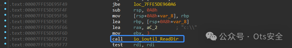 构建完整的文件路径后,它使用名为io_ioutil_ReadDir的函数来读取此文件,该函数与root_go_s_troll_agent_cmd___CmdGt2__getYes 函数 包装在一起。
