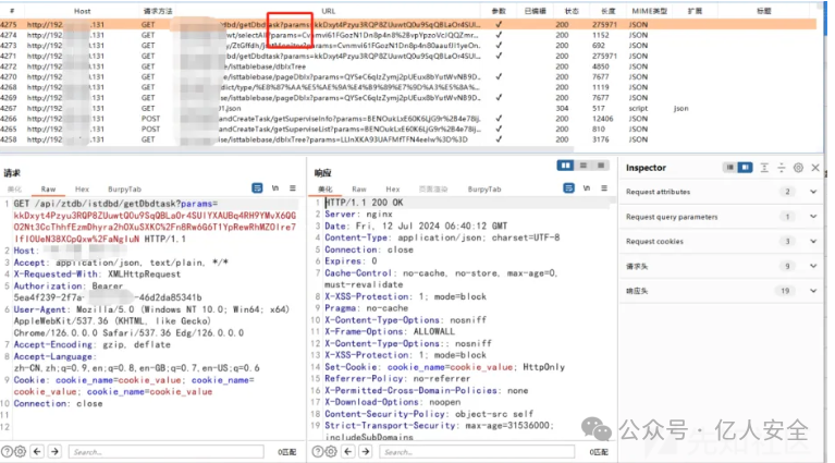 登录系统后,查看了历史数据包,基本上都是/api/xxx/xxx?params=加密数据