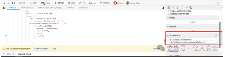 3、添加XHR断点,一步步进行前端调试寻找代码(比较慢,但也是最稳的办法)