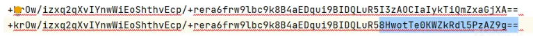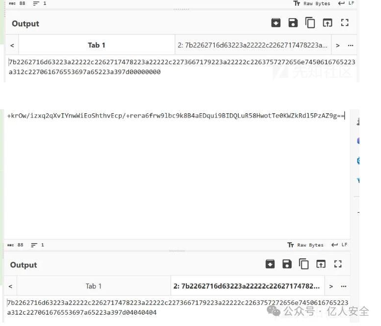 刚知道了是使用AES加密后,开心的去找gpt一顿输出来一个python加解密脚本,上面是系统生成的密文,下面是笔者用python脚本模拟生成的密文,可以发现在后面的一小段部分是不一样的。