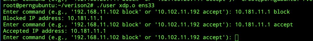 在这个测试当中,我对11.1这个ip先进行了封禁,又开了放行,这样用户态和xdp程序联动的防火墙就做好了。