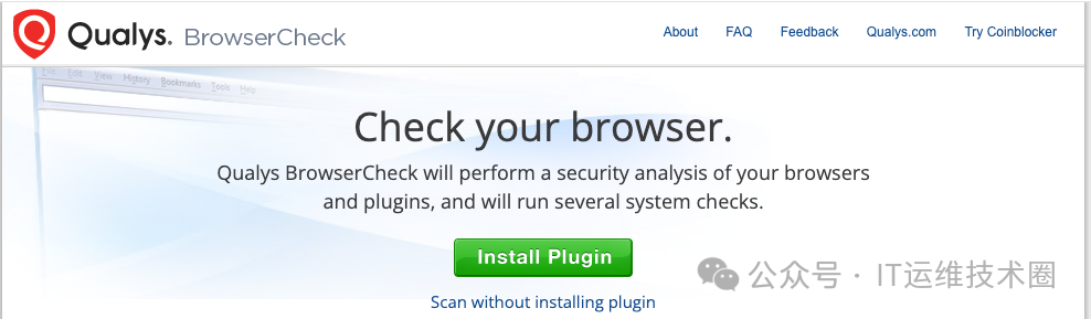 Qualys BrowserCheck 是由 Qualys 提供的一项在线服务,旨在帮助用户检查其网络浏览器及其插件的安全性和更新状态。这个工具对于确保浏览器环境的安全性和减少潜在的安全漏洞非常有用。
