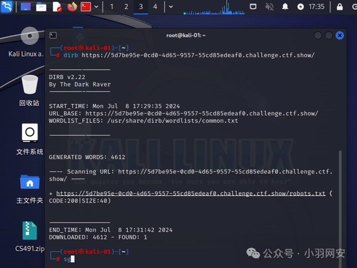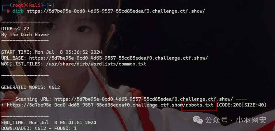 利用dirb工具爆破目标目录,得出一个robots.txt协议