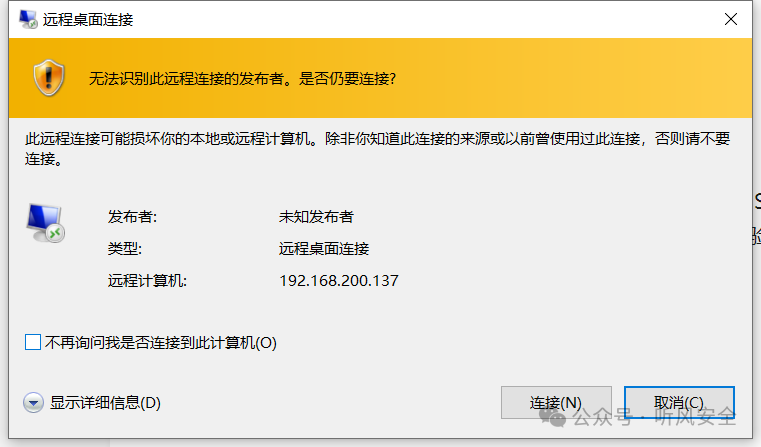 不过要注意的是这个方式只能算是对先认证再进入界面的一个“绕过”,并不是NLA绕过。