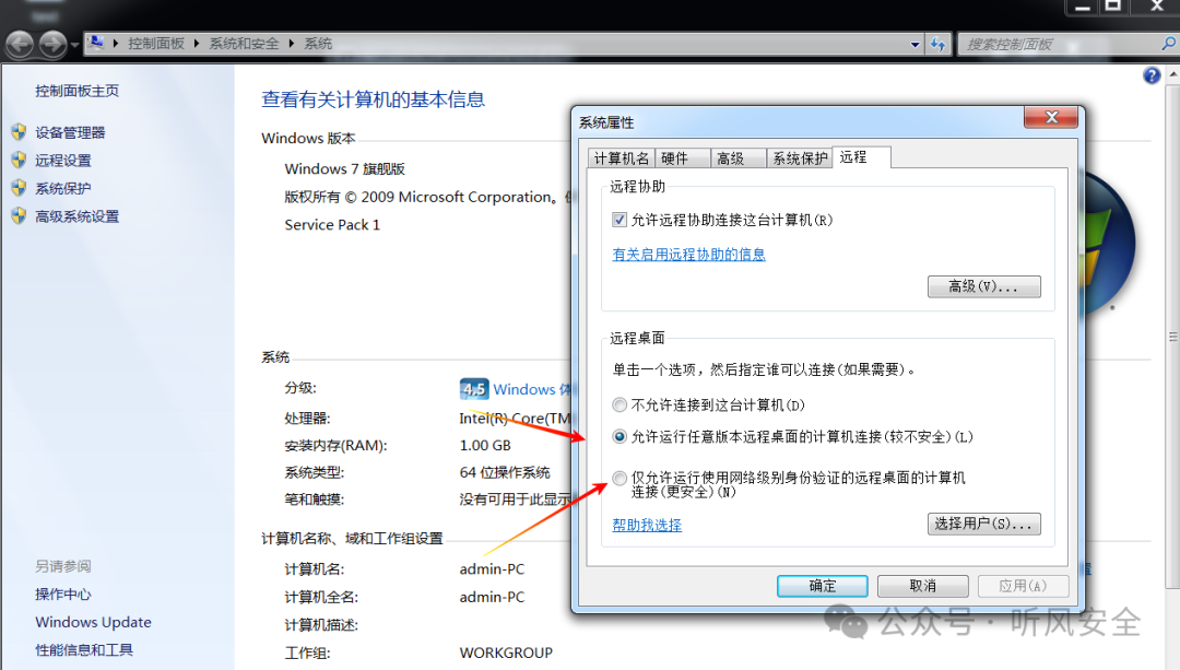 能进入到界面是因为机器并没有开启NLA