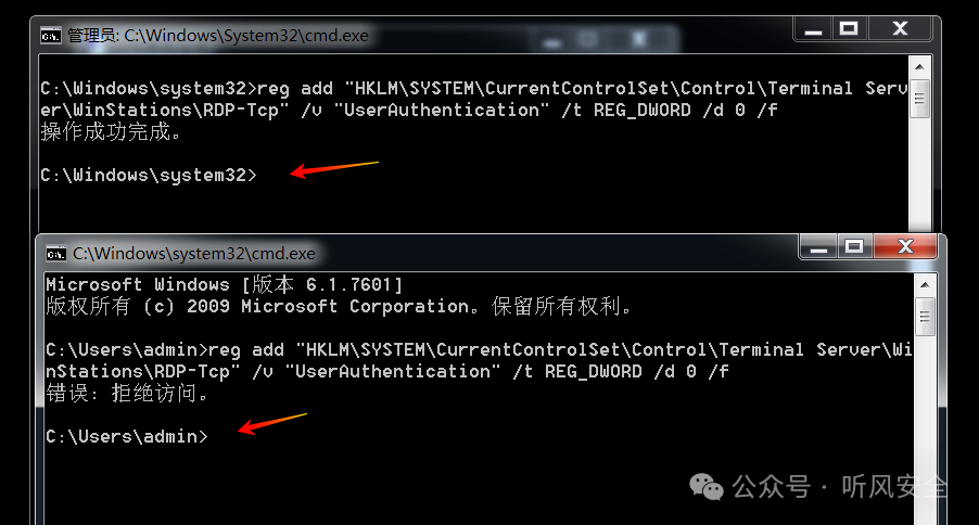 不过实际上这两条命令没什么用 因为使用这两条命令需要管理员权限