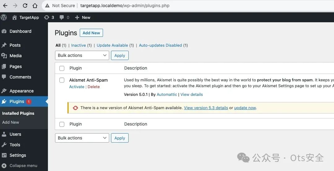 我们的目标现在访问插件页面,发现没有什么值得关注的。