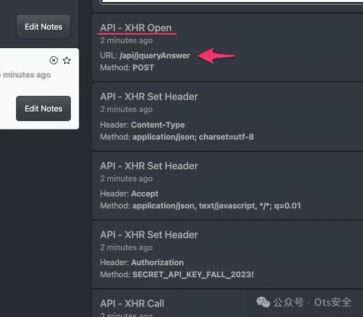 我们可以看到 API 调用将到达的端点 ( /api/xhrAnswer ) 以及所用方法。方法通常是 GET 或 POST。