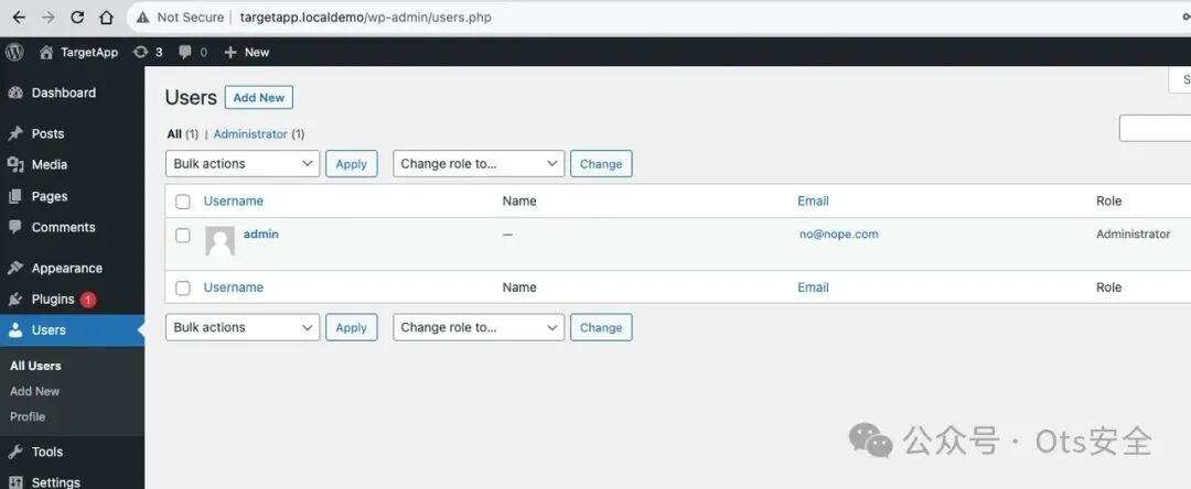 从该用户列表截图中,我们可以确认系统中只有一个用户,并且他们确实是管理员角色。