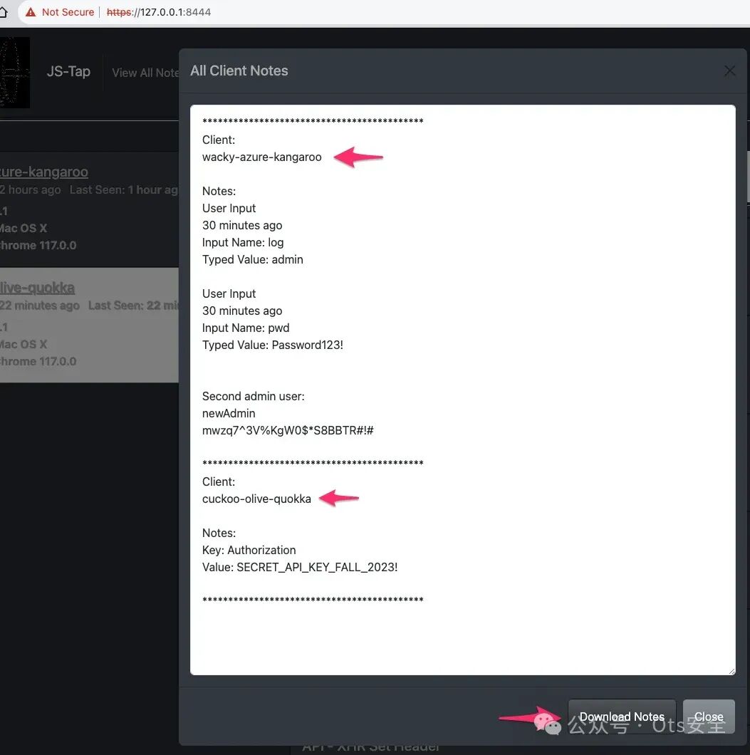 我们获得了第一批实实在在的战利品,可以将这些凭证复制并粘贴到客户笔记中。
