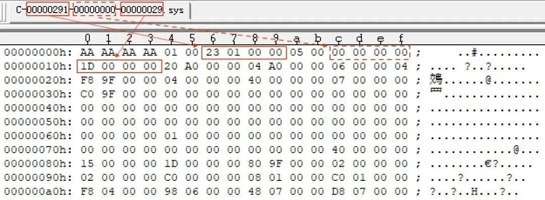 我们在“猎鹰折羽”报告中已分析了C-*.sys系列文件的格式。指出符合相关文件名的文件虽为Windows驱动文件后缀“.sys”,实际并非Windows PE格式文件,而是CrowdStrike自定义格式文件,该类文件文件头结构如我们上篇报告内格式分析结果所示,文件头内容与文件名强相关,程序会根据文件头信息校验文件名,文件内另包含hash校验信息,进行二次校验,hash计算方式为调用Windows自带库函数计算。