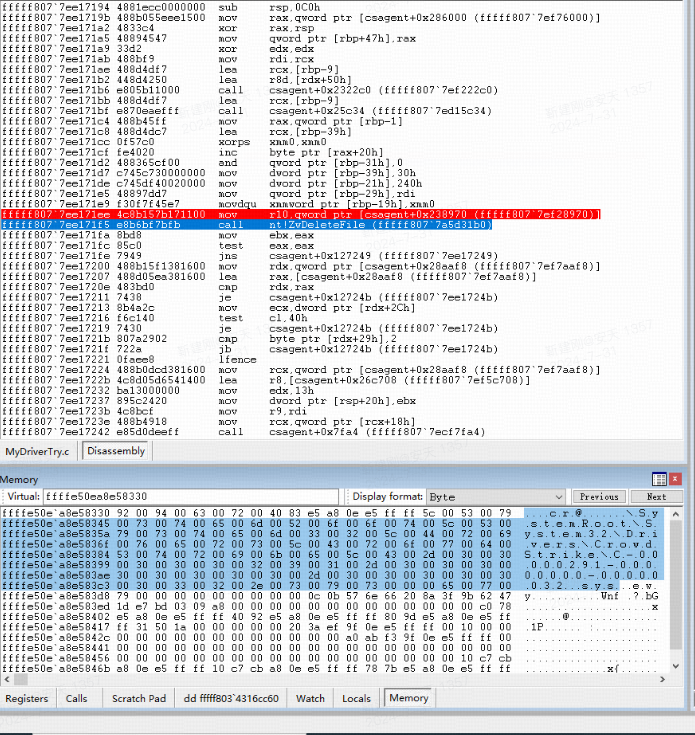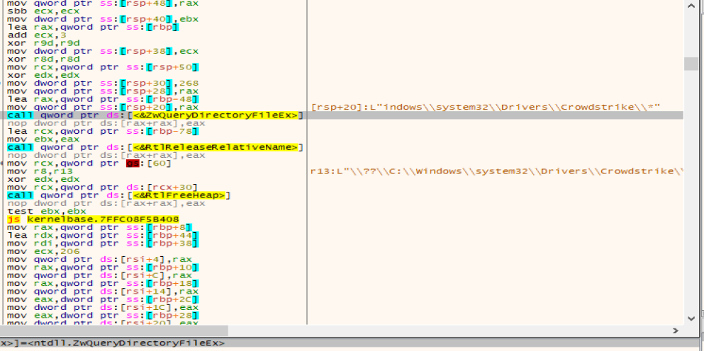 使用ZwQueryDirectoryFile函数遍历C:\Windows\System32\drivers\CrowdStrike目录中的 C-00000xxx-00000000-00000xxx.sys 文件,