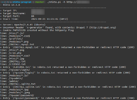 1. $ ./nikto.pl -h http://<ip_or_domain>
