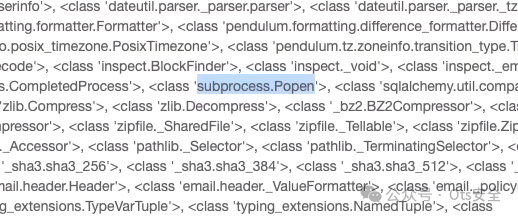 在这里,我们可以看到像 subprocess.Popen 这样的有用类可用于执行命令。利用取决于环境和类的可用性。