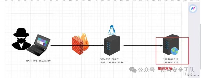`# 环境``kali NAT 192.168.220.189``centos NAT 192.168.220.14` `v4 192.168.22.136``win7 v4 192.168.22.12`` `` ``centos7.6添加vm4网卡方便与二层主机通讯,自动获取ip即可。`
