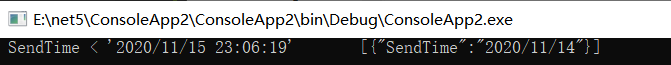`class Program { static void Main(string[] args) { var query = QueryDataTable().Result; Console.WriteLine(JsonConvert.SerializeObject(query)); Console.ReadLine(); } static async Task<DataTable> QueryDataTable() { var dt = new DataTable(); dt.Columns.Add(new DataColumn("SendTime")); dt.Rows.Add(dt.NewRow()["SendTime"] = "2020/11/14"); var where = $" SendTime < #{DateTime.Now.ToString()}#"; Console.Write(where + "\t"); var task = await Task.Run(() => { return dt.Select(where).CopyToDataTable(); }); return task; } }`