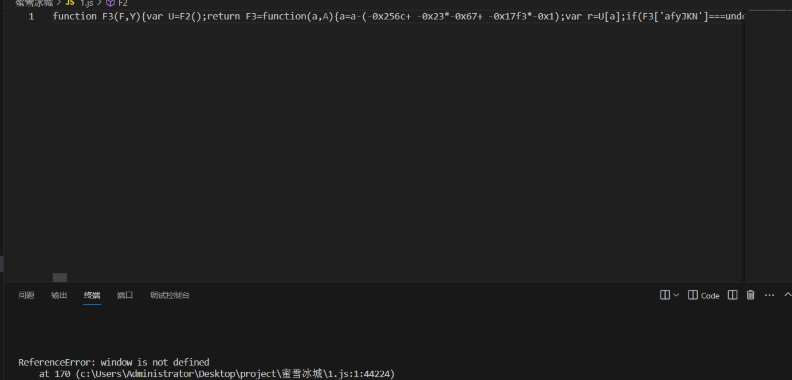 我们将代码压缩,放到 node 环境中执行一次,看看能不能正常报错: